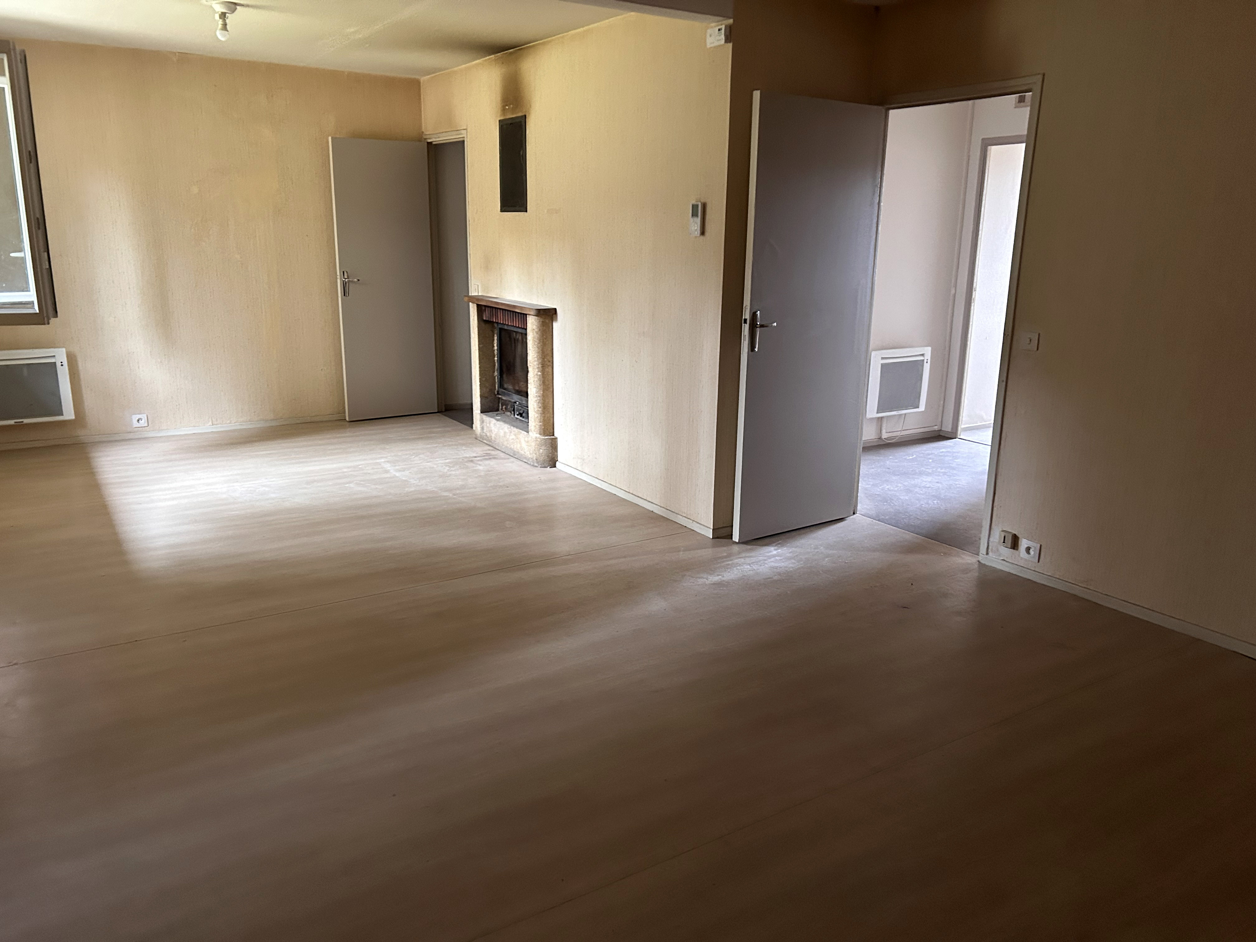 Appartement de type 4 alvéolaire situé au 1er étage, comprenant 2 chambres et un grand salon/salle à manger, une cuisine indépendante ainsi qu'une salle de bain et un WC séparé.